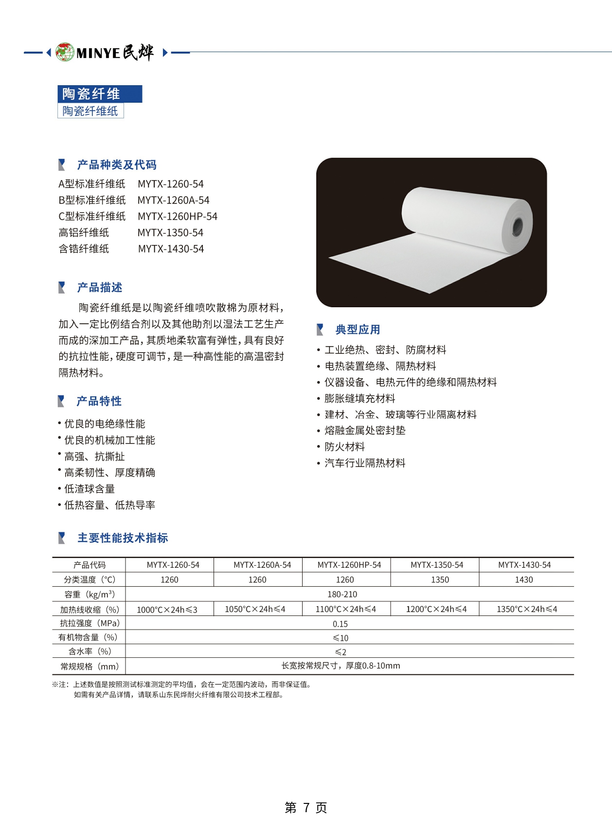 陶瓷纤维纸尺寸和温度